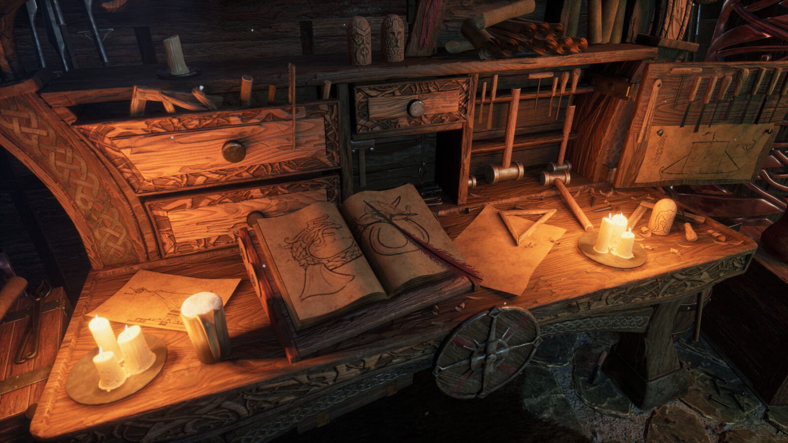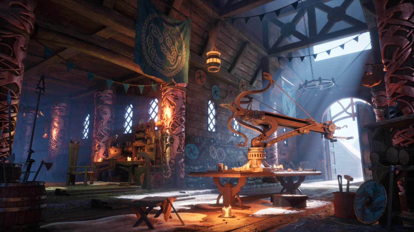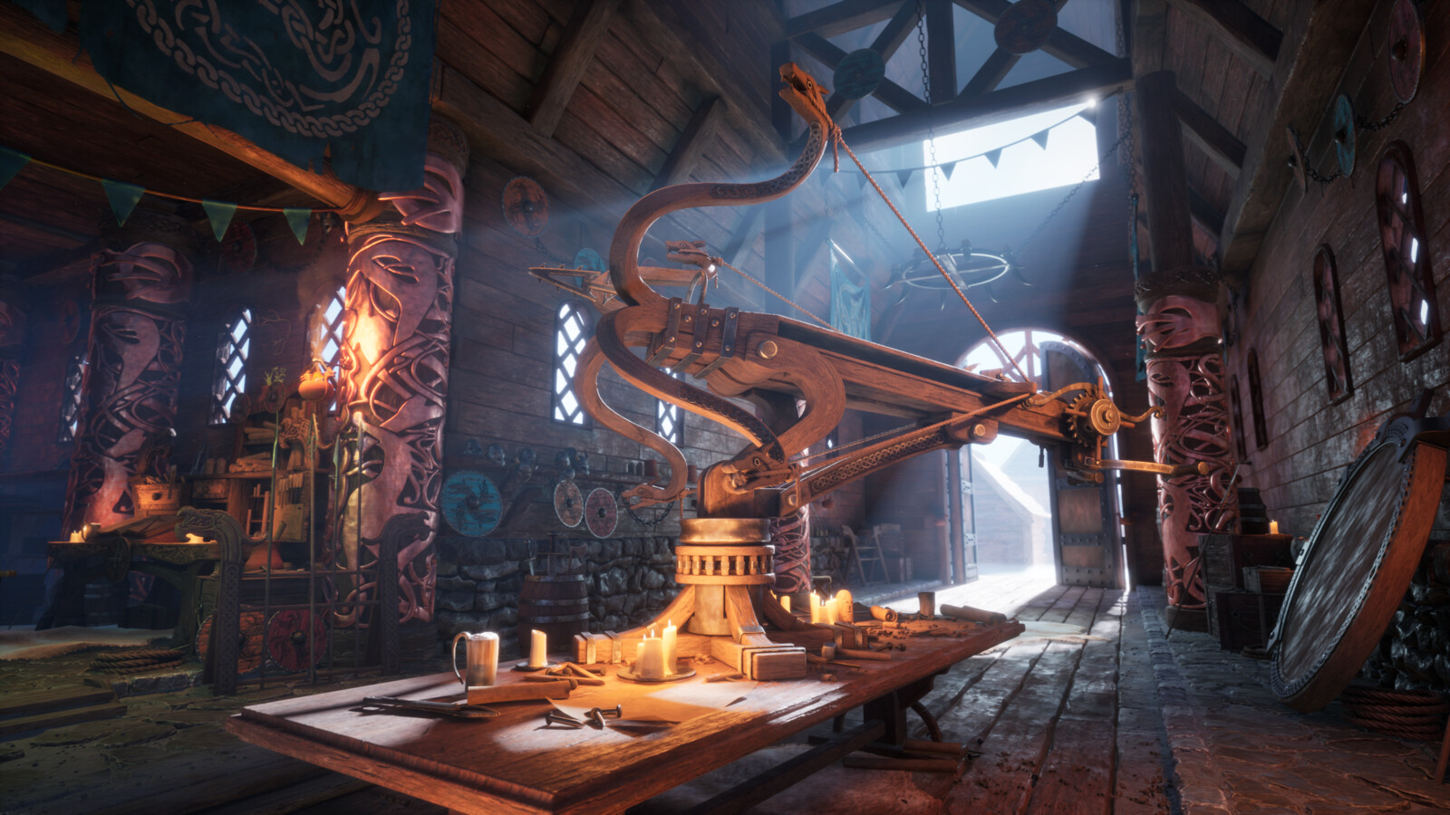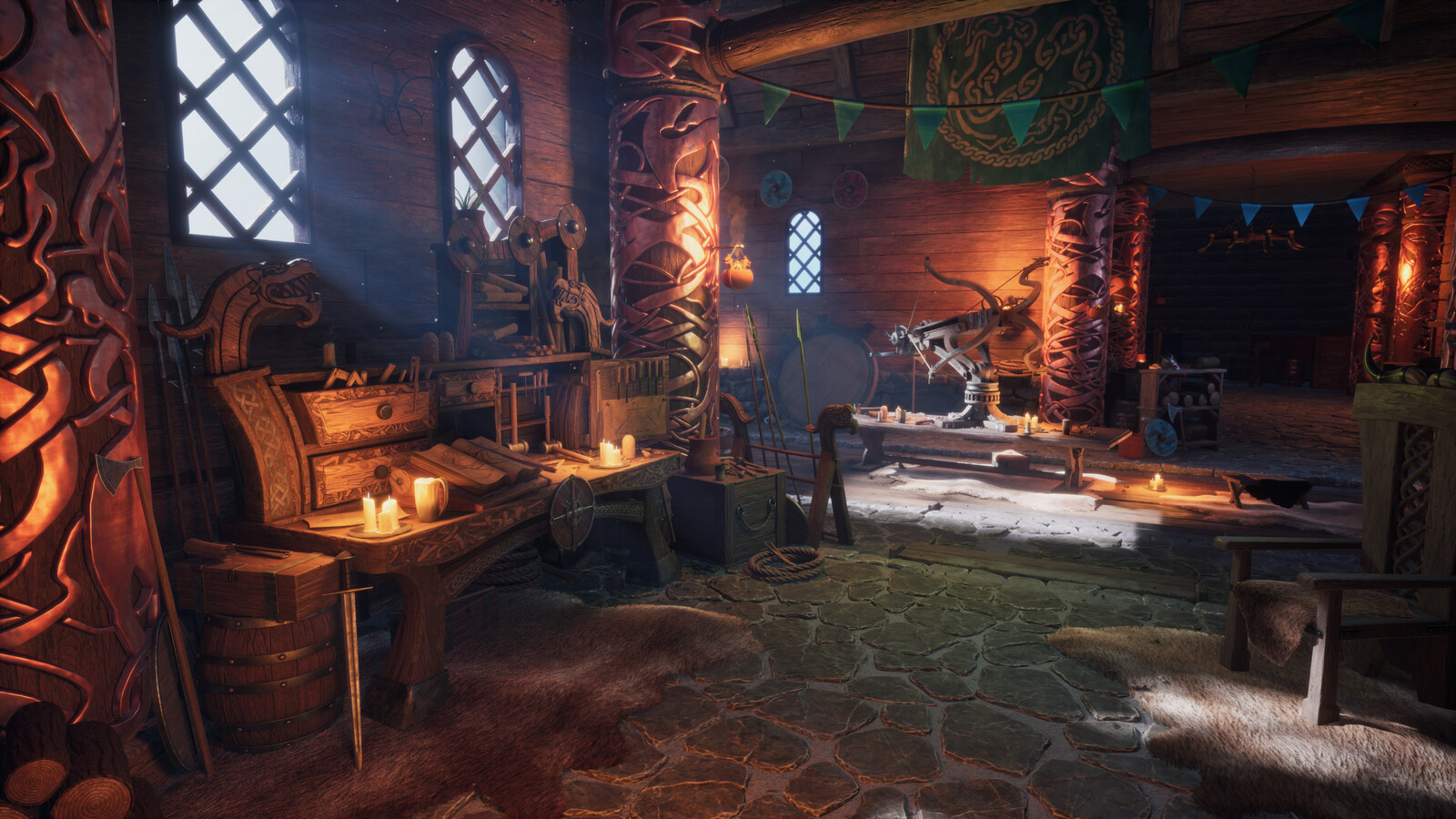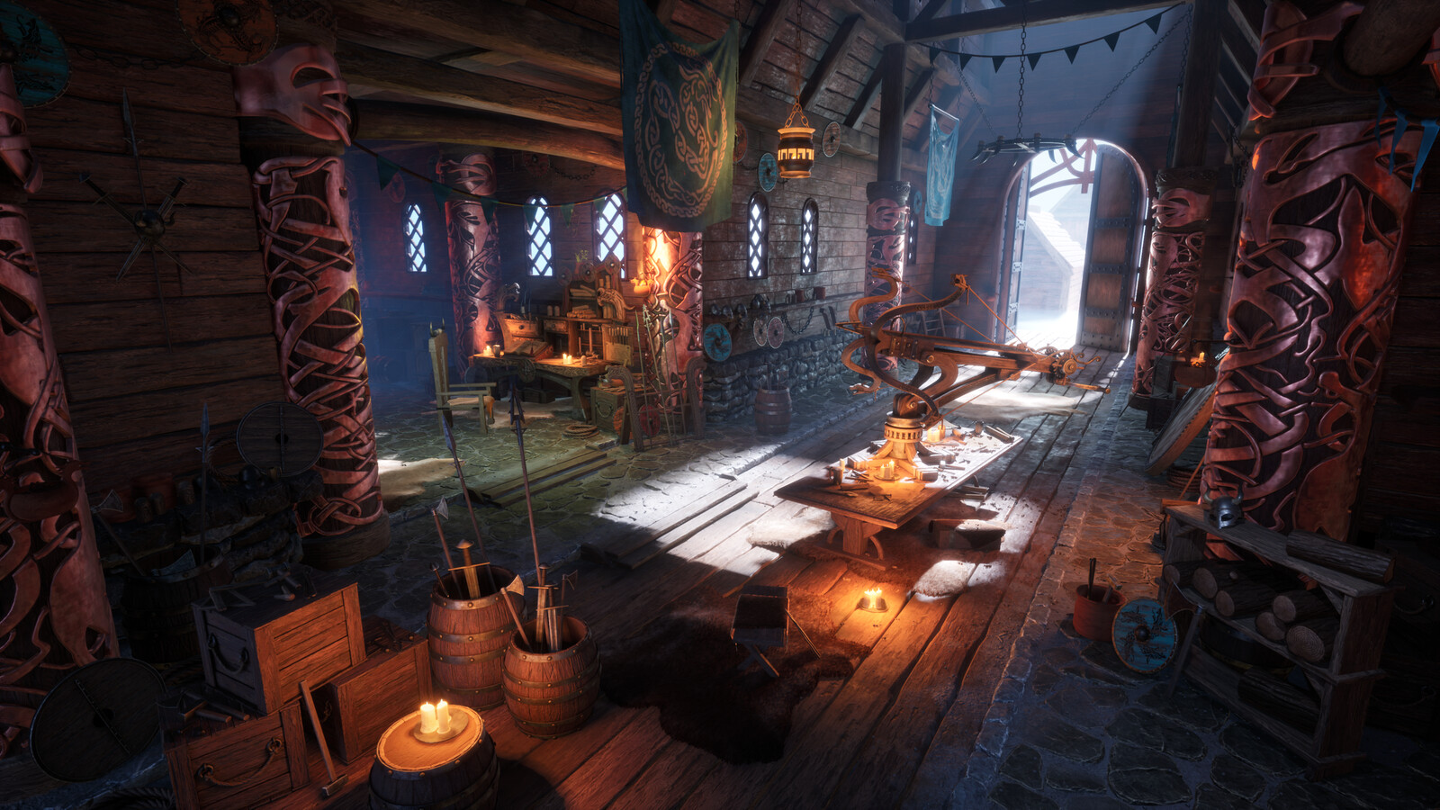 Hey everyone! I'm excited to share my Advanced Term project based on the concept "Viking's Workshop," by Robert Galliers. I had so much fun creating this piece and I learned a lot along the way. I was heavily inspired by God of War (2018), Ghost of Tsushima, Horizon Zero Dawn and How To Train Your Dragon in terms of the style I was aiming for. My goal was to utilize Substance Designer as much as possible to fill up the scene quickly, essentially applying broad strokes before tackling unique props. Working on the large assets first down to the small ones definitely helped to maintain the scope of the project. All aspects of this scene are created by me.